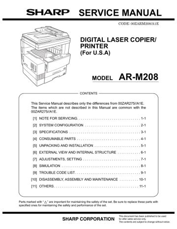 Currently you are looking for an Sharp Ar M208 Digital Laser Copier Printer Service Manual example that we provide here within some form of document formats many of these as PDF, Doc, Strength Point, and also images that will make it simpler for you to create an Sharp Ar M208 Digital Laser Copier Printer Service Manual yourself. For a more clear look, you can open several examples below. All of the illustrations about Sharp Ar M208 Digital Laser Copier Printer Service Manual on this site, we get from many sources so you can create a better document of your own.